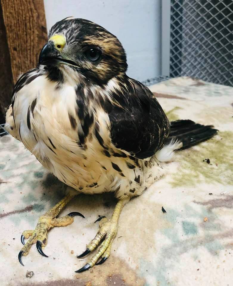 And another story that I hope ends well. Those of you who live in the Rensselaerville area know of the Kuhar Family Farm Cafe, and of course the Micah Burger. Well this is the Micah bird. Micah called yesterday as he had seen a hawk on the roadside and when he drove past again an hour later the bird was still there. So Kate and I met Micah and we drove to the scene. After a half hour of us searching and searching – no bird. I asked Micah to check later. Usually, despite good intentions, most people don’t follow through. Micah did and it was dark when he called to say he had found the bird! I believe this is a juvenile broad wing hawk, small relative to the bigger red tail. The bird was very weak and loaded with disgusting hippoboscid flies, a creepy flat fly that scoots under feathers and is a blood sucking parasite. They quickly leave the bird and land on whatever else is nearby. I hate them! I find no injuries on this bird but it is very thin. So a youngster that is not yet a successful hunter. It is very small so probably a male. Supportive care is in order and need to fatten him up. Whether that can be done before migration is yet unknown. They can go all the way to SA so strength and good condition is a necessity.